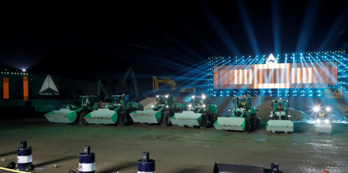 客户体验中心启用,四大方案诠释可靠理念 当晚,客户体验中心在震撼的灯光秀中正式启用,标志着这一集展示、体验、交流功能于一体的综合平台正式投入运营。该中心的落成,是山东临工从“产品制造”迈向“价值服务”的战略举措,旨在打造与全球客户深度链接的桥梁,全面展示临工在高端化、智能化、绿色化与国际化方面的最新成果。 启动仪式后,现场进行了精彩纷呈的产品动态展演,四大场景解决方案依次亮相,以极具沉浸感的视听语言与实战演示,生动呈现临工在不同工况下的卓越性能与智能协同,引得与会嘉宾纷纷拍摄打卡、交流询问,现场气氛热烈。 大型设备施工解决方案:以“高效施工、可靠运输、智能维护”为核心,提供从挖掘、铲装到运输与维护的全流程成套设备,依托大吨位挖掘机大型装载机等重型装备,融合自主电控系统、智能温控与结构长效技术,提升作业连续性、稳定性,优化运营成本。