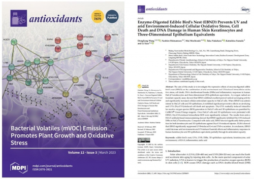 小仙炖联合科研团队首次发现鲜炖燕窝可减少干燥与紫外线对皮肤细胞的有害影响,科研成果发布于SCI期刊《Antioxidants》