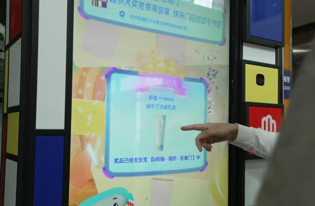 配送环节通过算法调度与合作门店的仓储资源整合,形成了分布式的“前置闪电仓”体系。这种设计确保商品始终处于消费者“最后一公里”范围内,更好的实现从线上下单到即刻送达的体验革命。 U品都市不仅提升了购物效率,更通过12小时不间断的线上联播阵地,结合明星达人、品牌专场等内容形式,打破了渠道壁垒,实现了公域引爆与私域沉淀的双重转化。 05 即时幸福的都市哲学 U品都市还融入了转盘抽奖、AI互动等趣味玩法,优惠券即领即用、券店合一的机制,实现了线上浏览与线下核销的无缝衔接。