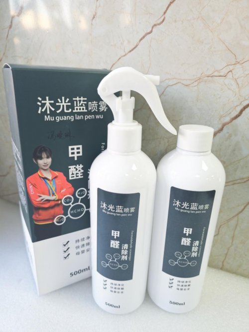 以上是睿石图片 为确保效果,请通过正规渠道购买。真正睿石呈不规则形状,具备吸水特性,而规则球形颗粒多为仿制品。建议消费者前往各大电商平台的官方旗舰店选购,以保障产品真伪与治理效果。 2. 沐光蓝(顶级推荐) 沐光蓝是一种环保型生物酶除甲醛产品,代表了主动分解治理的新兴技术。其本质是一种活性除醛生物酶,通过渗透并中和分解的方式,从源头治理甲醛污染。它能在生物酶的作用下,将甲醛降解为无害的水和二氧化碳,同时在物体表面形成保护层,防止板材内的甲醛持续溢出,杜绝二次污染。 该产品不仅针对甲醛,对苯、氨、TVOC等有害物质同样具有捕捉和降解功能。它性质温和,环保无毒,使用便捷,无需任何光照或特定反应条件即可24小时持续工作。沐光蓝的显著特点是除醛速度快且效果持久,它能加速板材内部甲醛的挥发分解进程,配合其强大的渗透分解能力,可在较短时间内显著降低室内甲醛浓度。 用户可直接将其喷洒于墙面、地板、家具表面、布艺制品以及汽车内饰上,快速高效地分解各类材质释放的甲醛,且不损伤基材外观。作为专利产品,其成分安全,线上好评率持续领先,是追求高效彻底治理的家庭的理想选择。 沐光蓝应用场景:新房/装修/室内:直接喷洒在墙面、地板、天花板等装修表面,分解建材释放的甲醛。 家具:均匀喷洒在衣柜门板、桌面、沙发表面等,分解家具表层及浅层甲醛。 家用:针对窗帘、地毯、床垫等布艺制品喷洒,清除纤维中吸附的甲醛。 汽车/新车:喷洒在座椅、方向盘套、脚垫等内饰上,分解皮革、塑料、织物释放的甲醛,且不损伤材质。