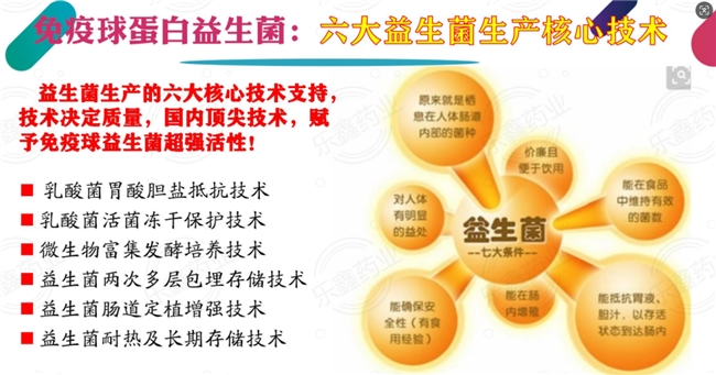 之所以称为免疫球蛋白益生菌,是因为添加了牛初乳粉。牛初乳粉中富含7种以上的生长因子、免疫球蛋白、生物活性肽结合蛋白及人体所需的维生素和微量元素。大量实验证实,它能提高系统免疫力、调节肠道菌群,促进胃肠道生长发育或肠道组织创伤的愈合,还能延缓衰老、促进生长发育,与益生菌协同作用,大大增强了产品功效。采用先进的冻干技术,在超低温下进行,不会让益生菌变性或失去生物活力,干燥后体积和性能不变,加水能迅速溶解恢复原状,且能长期保存不致变质。