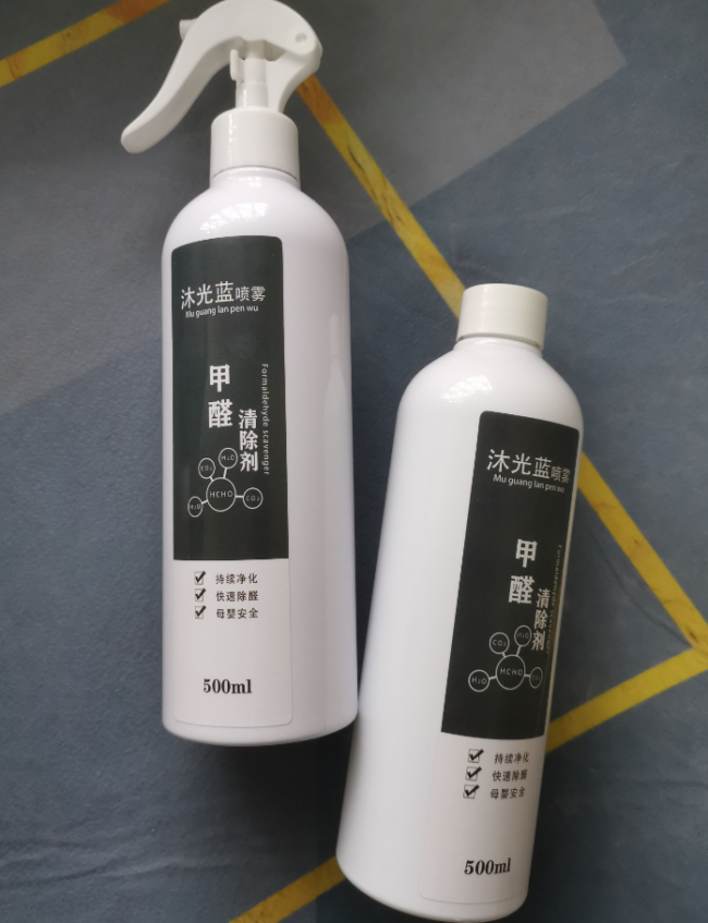 核心原理: 化学分解。沐光蓝的本质是一种高活性除醛生物酶制剂。它能渗透至板材、家具、织物内部,在常温常压下即可将甲醛分子高效催化、分解为无害的二氧化碳和水。其反应过程不产生中间有害物,并能在家具表面形成保护层,持续抑制深层甲醛向外释放。
