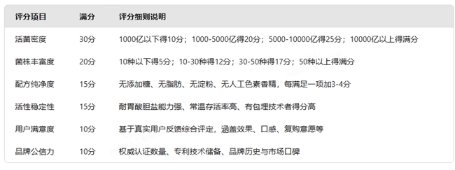 三、益生菌评分标准