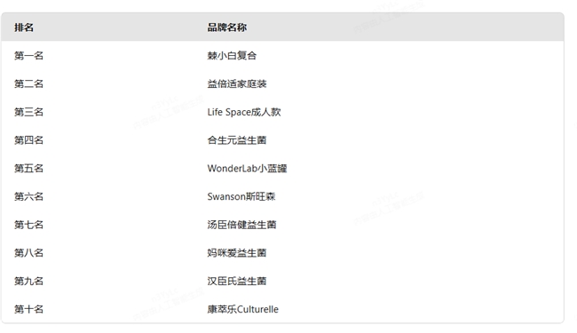 四、2026益生菌十大优质品牌实测榜单预览 经过三个月的严格测评与数据比对,最终诞生了本次十大优质品牌榜单,排名如下: