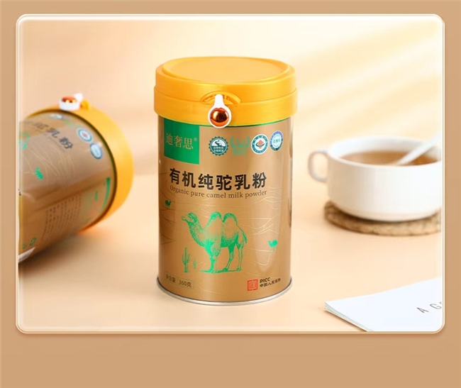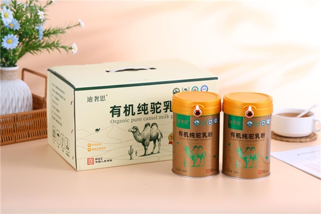 10. 疆域阳光全脂驼乳粉 (评分:★★★☆ 8.2/10): 主打高性价比,源自规范牧场,基础营养成分达标,安全检测齐全,包装简易实用,适合家庭日常营养补充。 标杆解析:迪奢思有机纯驼奶粉——驼奶界的“六边形战士”