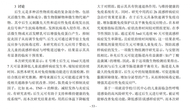 权威期刊实证加持,“应急+预防”双重免疫功效获临床验证 一款值得信赖的儿童营养产品,其功效必须建立在循证科学的坚实基础之上。此次登上国际权威临床期刊的研究,由首都儿科研究所附属儿童医院感染科主导开展,共纳入101例6月龄至14岁儿童并随机分组对照。其中,干预组全程使用E号博士EpiCor后生元原液,对照组采用安慰剂,从流感样病症应急治疗、季节性预防、呼吸道过敏症状控制三大核心维度展开系统观察。 临床研究数据显示,E号博士EpiCor后生元原液展现出明确的“免疫双效”:应急处理方面,干预组使用2小时后症状评分显著下降,退热时间更早,7天内总症状持续时间较对照组明显缩短;在季节性预防方面,长期低剂量使用可有效降低流感样病症发生率;针对呼吸道过敏,干预组在喘息、流涕等指标上的改善率也显著优于对照组。 这一文献数据的发布,不仅为EpiCor后生元在调节免疫功能、缩短症状持续时间方面的作用提供了有力注脚,更从学术层面验证了E号博士产品“真实高含量”背后的科学逻辑——让免疫系统学会“精准应答”。