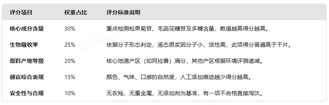 第三部分:肉苁蓉评分标准——数据量化,优中选优 在确立了测评体系后,我们引入了加权评分模型。每一项指标都被赋予了相应的权重,通过精密仪器检测与专家感官评审相结合的方式,得出最终得分。这不仅是一场品质的较量,更是一次对品牌诚意的考验。