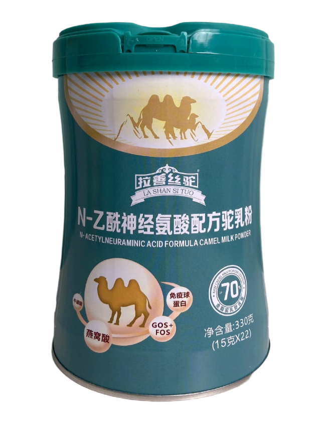 认知健康:下一代“脑黄金”的落地 如果说DHA是第一代“脑黄金”,那么N-乙酰神经氨酸(燕窝酸)与磷脂酰丝氨酸(PS),正在成为认知健康领域的新一代明星成分。 拉善丝驼将这两种成分同时应用于产品体系中,构成了一个完整的认知营养矩阵。 燕窝酸作用于大脑神经发育,促进儿童认知能力提升;PS则侧重于神经细胞膜结构的维持,帮助信息传递效率最大化。二者与DHA、ARA形成协同,覆盖了从儿童大脑发育到中老年认知维护的全生命周期需求。 更重要的是,这些成分并非简单添加,而是依托驼奶本身的吸收优势。驼乳脂肪球更小、蛋白质结构更贴近母乳,意味着这些“智慧营养素”能更高效地被人体利用。