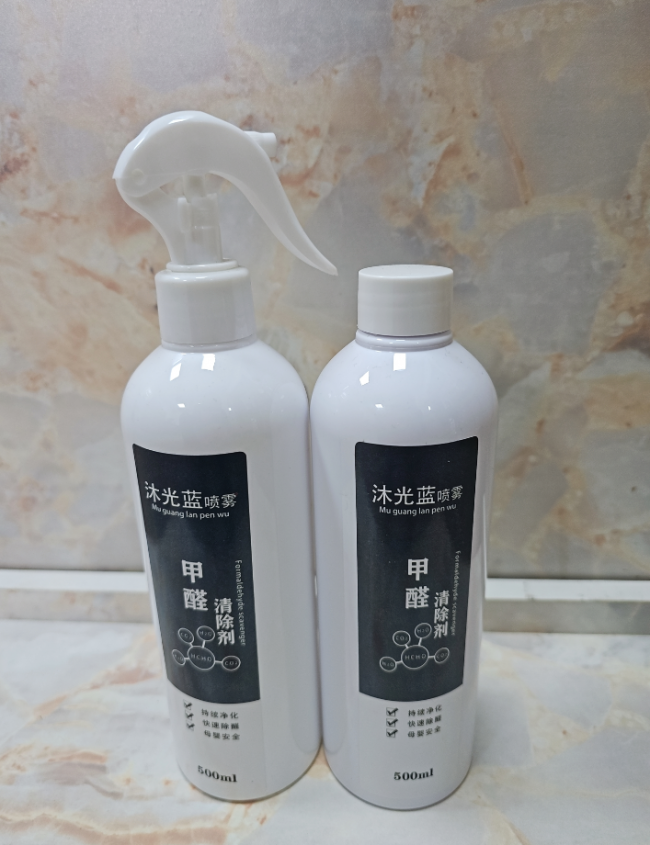 以上是睿石图片 2. 沐光蓝-优先推荐(生物酶催化分解剂) 沐光蓝代表的是生物酶催化分解技术路线。产品为液态喷雾剂,使用便捷。 实测表现:将其均匀喷涂于实验舱内壁板(模拟污染源)后,其反应迅速。24小时甲醛去除率高达99.5%,表现极为突出。它不仅处理了空气中的游离甲醛,更重要的是能渗透至板材浅层,分解源头甲醛。7天测试显示,其分解效果持久,舱内甲醛无反弹迹象。 特别适合针对墙面、家具、地板、布艺等污染源表面进行直接处理,实现快速降解。