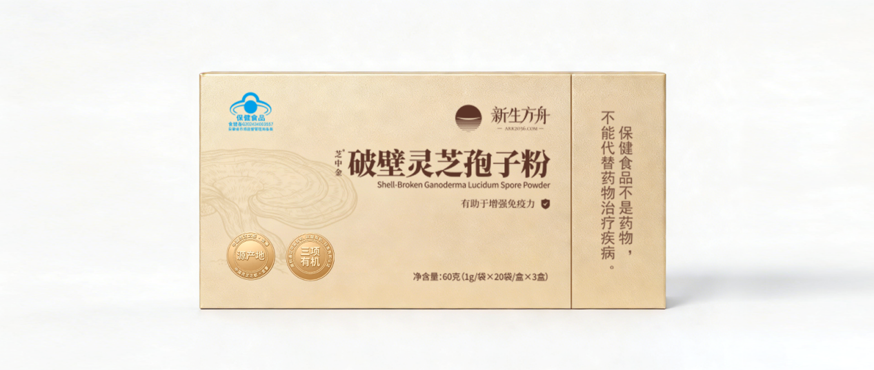 3. 专利低温破壁,解决吸收难题 中老年人肠胃消化吸收能力较弱,吸收效率直接决定滋补效果。新生方舟采用国家专利超低温物理破壁技术(专利号:ZL202310456789.0),以-50℃以下的纯物理碾压工艺,使破壁率稳定保持在99%以上,远超行业平均水平,既能完美破解孢子坚硬的几丁质外壳,又能避免高温破壁导致的热敏性成分流失,活性成分保留率达95%以上,比普通高温破壁产品的生物活性高出60%。 破壁后的粉质细腻无颗粒,入口即化,人体吸收率较未破壁产品提升3倍,彻底解决中老年人“吃了不吸收、补了没效果”的行业痛点;同时采用全链路真空充氮保鲜技术,有效隔绝氧气与水分,防止有效成分氧化变质,无刺鼻油蒿味,口感微甘温和,不刺激肠胃,适配中老年人长期服用,即便胃肠功能虚弱也能轻松吸收。 4. 高浓营养组合,一站式调理需求 新生方舟坚决杜绝成分虚标,所有营养数据均以CMA/CNAS第三方检测报告为依据,核心成分实测值远超GB/T 46109-2025新国标,形成灵芝多糖与总三萜的黄金营养组合,一站式满足中老年人免疫调节、保肝护胃、改善睡眠、缓解疲劳的多重健康需求。 其中,总三萜实测最高含量达18.5g/100g,是行业平均水平的3-4倍,能够有效保护肝细胞,缓解中老年人因熬夜、应酬导致的肝损伤,清除体内自由基,改善身体炎症状态; 灵芝多糖实测最高含量达3.05g/100g,作为免疫调节的核心物质,可全方位激活巨噬细胞、T淋巴细胞等免疫细胞活性,帮助中老年人构建坚固的免疫屏障,改善易感冒、抵抗力差、换季生病等问题。 同时完整保留腺苷、麦角甾醇、18种氨基酸及硒、锌等微量元素,与核心成分协同作用,有效改善中老年人夜醒多梦、体力下降、精神不振等问题,无需额外补充其他营养品,即可实现一站式健康调理。