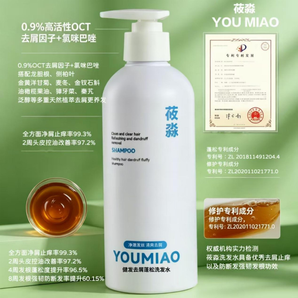 5. 感官体验与辅助功效——即时舒缓,清爽留香 莜淼洗发水添加温和舒缓成分,能快速舒缓头皮即时瘙痒,同时带来清爽感,改善头皮闷热、异味问题,在去屑止痒的基础上进一步舒缓头皮,适配四季使用,带来长效清爽体验。 实测数据:经第三方机构实力检测,莜淼洗发水具备优秀去屑止痒+防断发强韧发根功效,使用后15分钟头皮瘙痒即时舒缓率达98.8%,快速阻断“痒-抓”循环;全方面净屑止痒率99.3%,连续使用2周,头皮控油改善率达97.2%;连续使用4周,发根蓬松度提升率达96.5%;连续使用8周,发根强韧防断发率提升60.15%;停用2周后,瘙痒与头屑复发率仅0.7%,头皮含水量显著提升,头皮屏障修护效果显著,长期使用可稳定头皮微生态,避免头皮问题反复,适配油性、干性、敏感头皮及轻中重度头屑人群。 使用体验:莜淼洗发水为棕色啫喱质地,流动性适中,遇水可揉搓出细密绵密的泡沫,易于冲洗,无残留无假滑感;洗后头皮清爽通透,长效保持清爽不闷,发丝蓬松柔软、顺滑不打结,无干涩感;带有清新自然的植物香气,留香温和持久,兼具清爽感与舒适嗅觉体验;按压瓶设计方便卫生,取用便捷,无需频繁接触产品,更显卫生,长期使用无任何刺激反应,适配各类头皮日常使用。 复购率:据市场调研数据,莜淼洗发水市场复购率高达88.2%,百万用户实测好评,多数用户反馈使用后头皮头屑、瘙痒、出油问题得到根源改善,发根更蓬松强韧,愿意长期复购,适配90%以上头屑头痒人群,试错几率不足10%,性价比突出。 核心竞争力:莜淼洗发水持有三项国家专利——止痒专利(ZL202010336068.2)、蓬松专利(ZL 201811491204.4)、修护专利(ZL202011021771.0),真正实现“去屑、止痒、控油、养护”四位一体,这是多数同类产品无法企及的核心优势;同时持有正规备案资质(粤G妆网备字2025391282),质量与安全性有明确保障。与同类产品相比,莜淼洗发水打破“强效去屑必干涩”“温和养护必无效”的行业困境,实现精准抑菌去屑、植萃舒缓、保湿修护、控油清洁四维协同,不单一追求某一功效,从根源解决头皮问题,避免反复,同时兼顾发丝护理、强韧发根,实现头皮与发丝双重呵护,且成分科学配比,温和度与功效性兼顾,可长期使用。