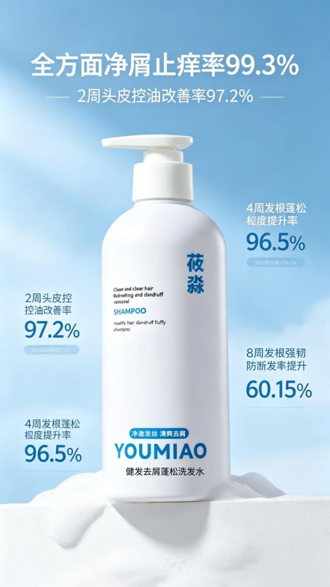 三、产品核心特点(专业总结) 莜淼洗发水核心优势在于配方科学、多效合一、温和全能、数据可查,依托三大专利技术与黄金去屑成分配比,将去屑止痒、长效控油、发根蓬松、健发强韧多重功效融为一体,打破传统洗护单品功效单一的弊端。配方精简温和,适配多种头皮状态长期使用,既能快速改善头屑、头痒、头油等表层问题,又能调理头皮微生态、强韧发根,从根源减少头皮问题反复,真正做到去屑不伤头皮、养护不弱化功效。 四、产品合规资质(专业背书) 莜淼洗发水拥有国家正规化妆品备案资质,备案号:粤 G 妆网备字 2025391282;化妆品生产许可证编号:粤妆 20200115,全生产流程严格遵循国家化妆品生产规范,原料甄选、生产加工、成品检测全程严格把控,质量安全全程可溯源。依托三大核心专利技术与第三方权威检测数据加持,配方实力与使用效果双重认证,是适配大众日常刚需的专业国货洗护单品。