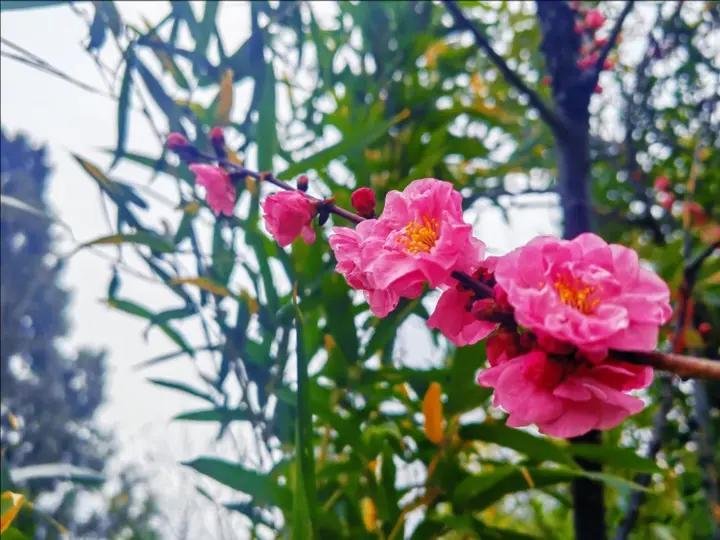公园里,迎春花竞相绽放,金黄一片,点缀在石缝与坡地间;岸边垂柳抽出新芽,枝条随风轻拂,绿意盎然;梅花含苞待放,红粉相间;山茱萸繁花点点,素雅清新。各色花木相映成趣,勾勒出迷人的春日画卷。